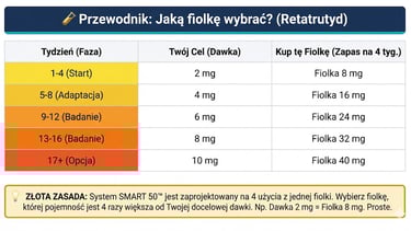 Pamiętaj, każda fiolka z Tirzepatydem lub Retatrutydem sprzedawana jest w zestawie z Premium Buffer Solution pH 7.4 2ml oraz strzykawkami. Zestaw zawiera precyzyjnie dobraną ilość wody